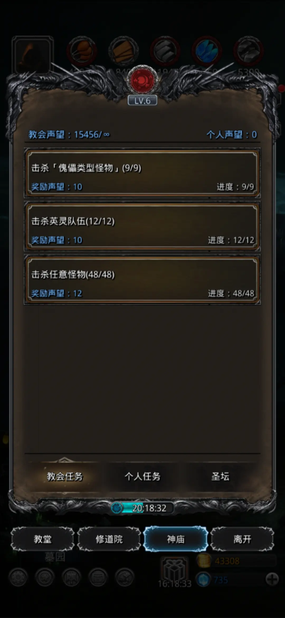 教会任务是获取教会银币和提升声望的重要途径,咱们可以通过完成个人任务和教会任务来积累资源。个人任务每48小时刷新一次,每次会提供三个不同难度的任务,奖励数量不等的银币。建议优先完成这些任务,尤其是初期,攒够1200银币能解锁更多兑换选项。教会任务则主要提升整体教会声望,虽然对个人直接帮助不大,但能解锁更高级的教会福利。记得每天登录游戏,签到也能拿到少量银币,积少成多。