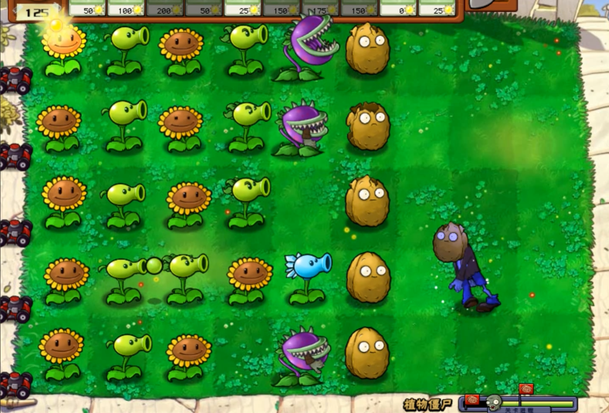 植物僵尸1关卡的核心策略在于合理搭配防御型植物与攻击型植物,同时注重阳光资源的快速积累。开局必须优先种植向日葵或阳光菇,确保阳光供应充足,建议至少形成两排阳光生产单位。攻击植物推荐选择豌豆射手、卷心菜投手等基础远程单位,防御端则需要坚果墙或高坚果构筑防线。特别注意该关卡会出现模仿植物特性的僵尸,需预留樱桃炸弹等应急性植物应对突发状况。