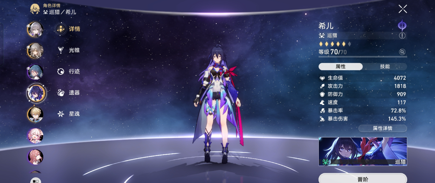 景元、希儿等老牌输出仍能应对多数环境,而新角色如那刻夏因0+0即可成型成为性价比之选。辅助角色中,布洛妮娅和阮梅的保值率最高,其机制难以被版本迭代淘汰。养成过程中需平衡角色等级、行迹和遗器进度,避免因过度追求副词条导致资源分配失衡。