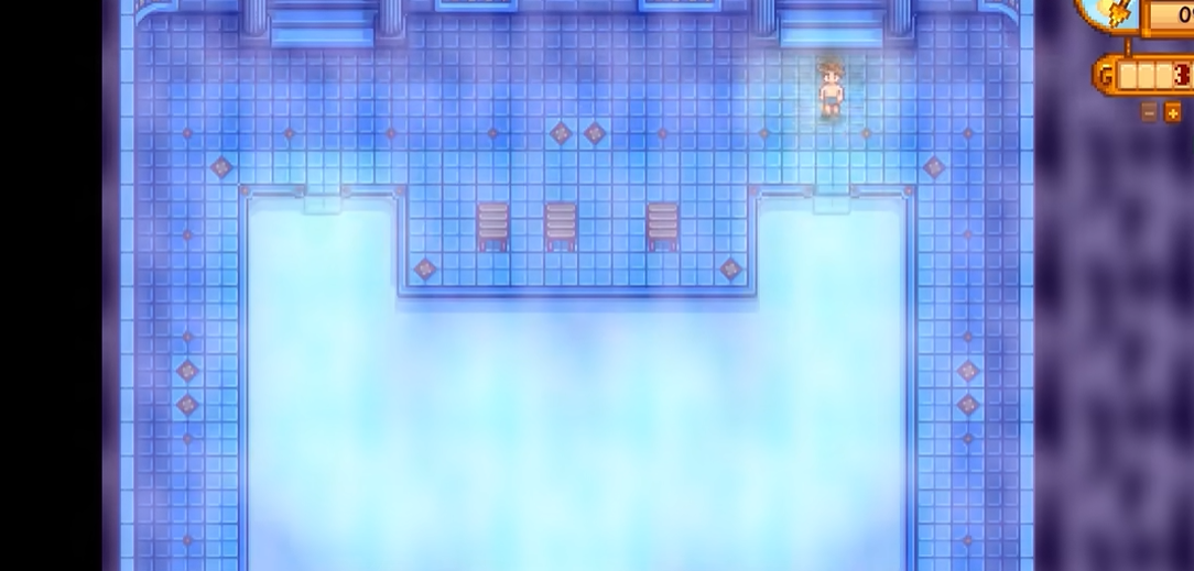 进入温泉前,玩家需要先通过更衣室。更衣室分为男女两个区域,玩家无法进入与自身性别相反的更衣室。进入温泉区域后,玩家可以选择在水中站立不动或坐下休息来恢复体力。需在温泉中移动不会恢复体力,必须保持静止状态才能获得恢复效果。温泉的恢复速度较为缓慢,建议将其作为一天工作结束后的休憩地点。