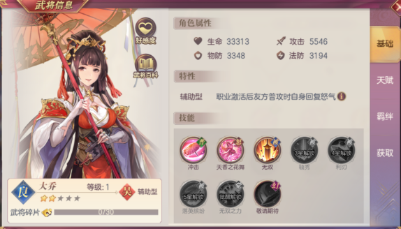 吴国的辅助体系以大乔为核心,其群体治疗和伤害减免效果显著提升队伍的生存能力,尤其在持久战中作用突出。鲁肃或小乔的加入可进一步强化团队功能,鲁肃的后排减怒控制能干扰敌方节奏,小乔的怒气恢复与灼烧增伤则更适合爆发型阵容。陆逊作为金将的代表,其火攻叠加与抗击打光环为团队提供额外的输出与防御支持,但需注意其培养成本较高。