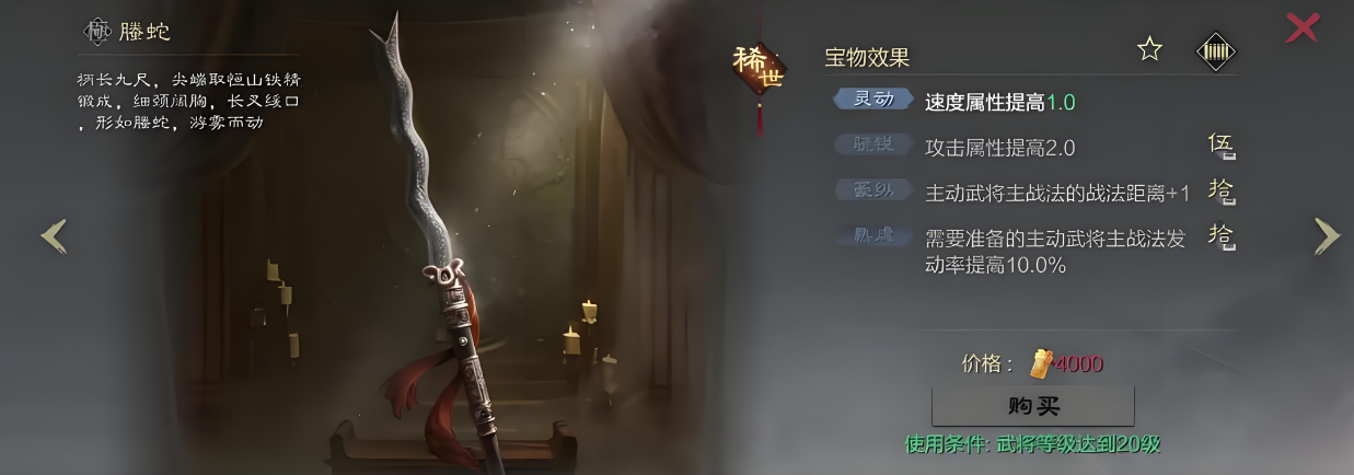 精品宝物可通过强化提升属性,最高强化至5级后需要进行进阶。进阶需要消耗特定材料,铁质武器需要铁赤山铁,木制武器需要小叶紫檀。精品宝物进阶后变为罕俦宝物,再次进阶可成为稀世宝物。每次进阶会解锁新的基础效果,同时宝物名称和形态会发生变化。需罕俦宝物需武将等级达到20级,稀世宝物需30级才能装备,否则宝物效果将暂时失效。