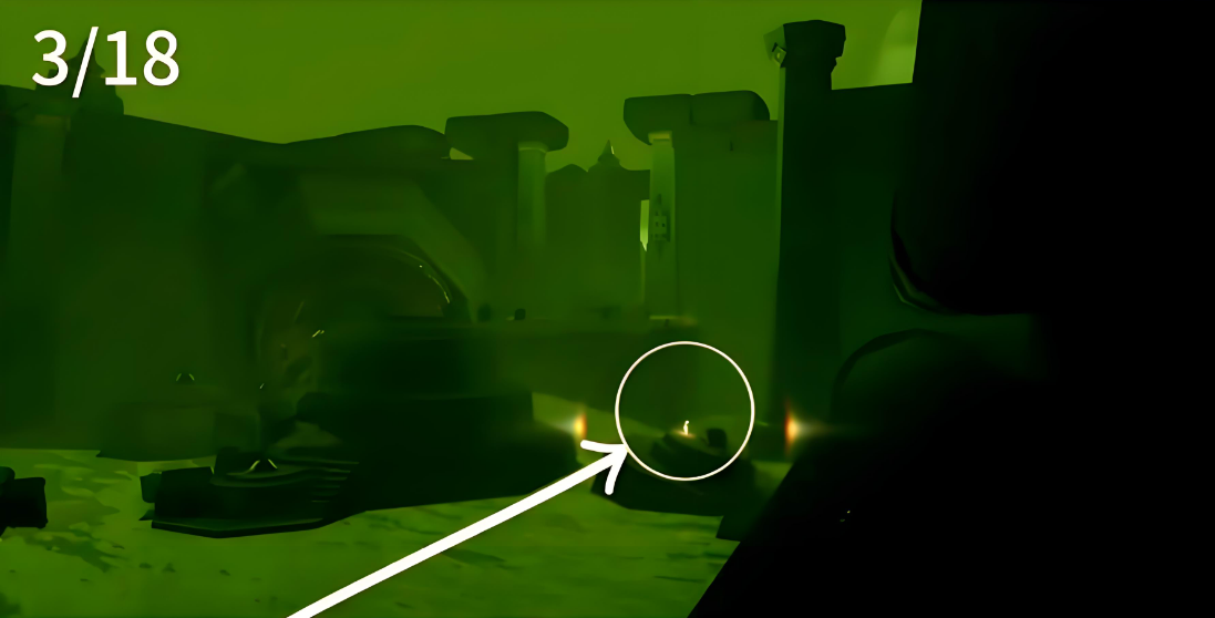 墓土地图中共有18个光之翼,分布在边陲荒漠、巨兽荒原、四龙图、沉船图、远古战场及方舟等区域。边陲荒漠区域的光之翼位于大厅出口石柱平台和下方沙滩,巨兽荒原的光之翼藏在左侧破塔和出口门缝中,四龙图的四个光之翼分别位于高处平台、左侧管道、中间石台及出口台阶附近。沉船图的三个光之翼需进入船体内部或右侧山壁管道寻找,远古战场的光之翼则分布于城墙顶端和神庙内外。