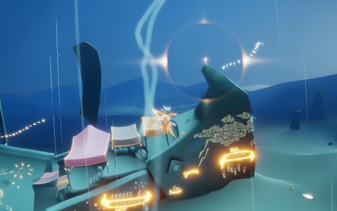 沉船图的光之翼需从四龙图右侧入口进入,船尾金色石堆和右侧水管内各有一个,第三个位于船体内部甲板下方。远古战场的光之翼需飞至城墙顶端或神庙入口右侧柱子后方,神庙内部中央石台也藏有一个。方舟区域的光之翼位于船尾顶部和螃蟹洞墙壁,需通过魔法季传送门进入后沿云层飞行抵达。
