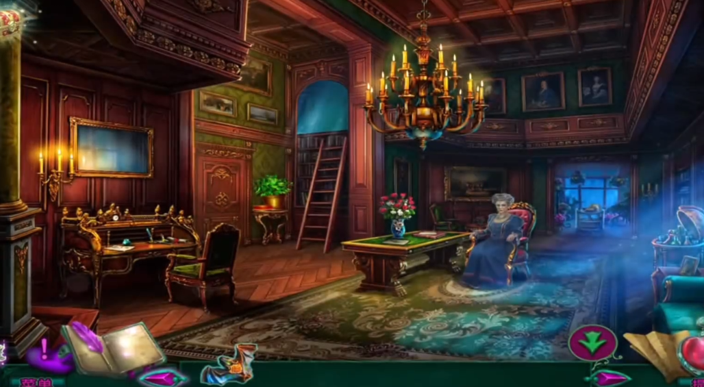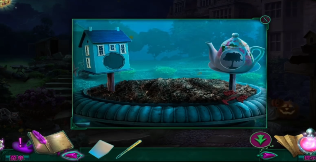 玩家需要在庄园大门楼梯右侧的树下找到鸟窝,点击后触发寻找12颗宝石的小游戏。这个小游戏要求玩家将散落的宝石连成一条完整的链条,过程中需要使用紫色羽毛清除蜘蛛网、用汤匙刮除苔藓、用鱼饵喂食鸟类等操作才能收集全部宝石。完成游戏后可以获得字母链道具,这是后续解谜的重要物品。