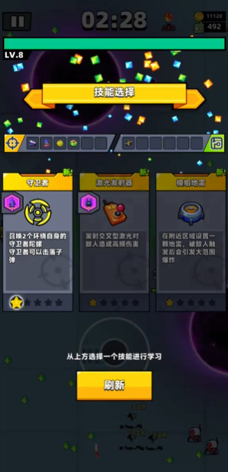 建议优先选择苦无作为主武器,搭配无人机和雷电发射器,这样能自动追踪敌人,减少操作压力。开局后尽量集中在一个区域移动,避免满屏乱跑,这样经验和道具会集中刷新,方便快速升级。记得留好炸弹和回复道具,等到BOSS阶段再使用,关键时刻能救命。