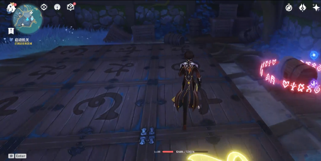 清籁旧宝任务的地下室解谜分为两个阶段,第一阶段需按特定顺序踩踏发光地板,第二阶段需重新启动机关后遵循新图案完成一笔画路径。八酝岛蛇神之首密室的拉杆机关需按固定顺序操作:以角色站位为基准,顺序为左上、右下、右上、左下。部分解谜伴随战斗环节,例如击败盗宝团、野伏众或愚人众后才会解锁后续机关。