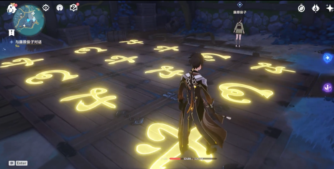 首先需要找到藤原俊子身旁墙上的启动开关,激活后观察周围地板上的特殊字符,这些字符与藏宝图标注的顺序一致。启动开关后按照藏宝图顺序踩踏地板,通常需要以一笔画形式点亮所有地板,确保顺序不乱。完成初次解谜后,地下室门会开启,但部分场景会触发二次机关变化,需重新启动开关并按照新出现的图案调整踩踏顺序。