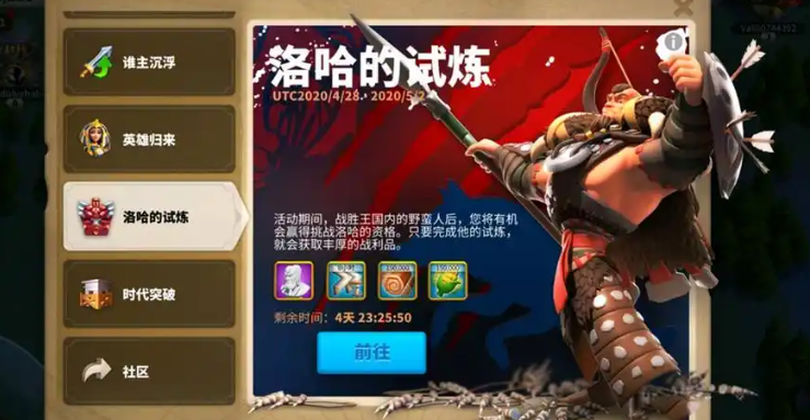 前期发展阶段,体力是极其重要的资源,合理分配体力能够显著提升发展效率。前期体力的核心用途包括击杀野蛮人、参与洛哈活动、攻打野蛮人城寨以及完成各类任务。野蛮人作为基础资源来源,击杀后不仅能获得经验书和资源包,还能积累活动道具。洛哈活动是前期收益最高的野人活动,通过消耗体力击杀野蛮人可获得大量资源和加速道具。野蛮人城寨则提供城堡升级材料和经验书,是微氪玩家的重要资源来源。每日任务和活动也需要消耗体力,但回报通常较高。