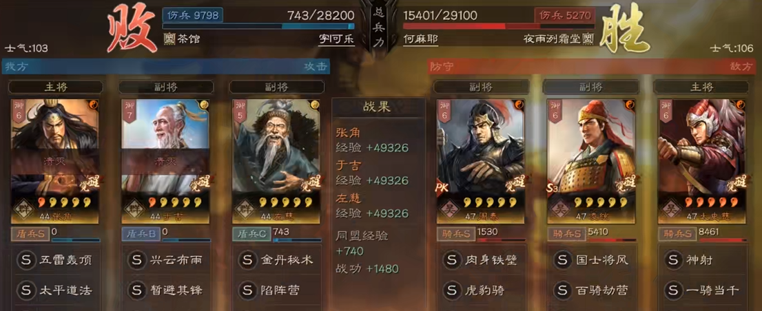 最推荐的阵容是三仙队,把于吉和张角、左慈配在一起,这个组合能触发乱世妖星缘分效果,提升全队的智力和速度,同时让主将获得攻心加成;张角作为主力输出,带太平道法和士别三日战法,左慈负责治疗和增益,带武锋阵和刮骨疗毒,而于吉则装备藤甲兵和御敌屏障来增强队伍防御,这样整个队伍的坦度和持续输出都很均衡,适合中后期持久战。