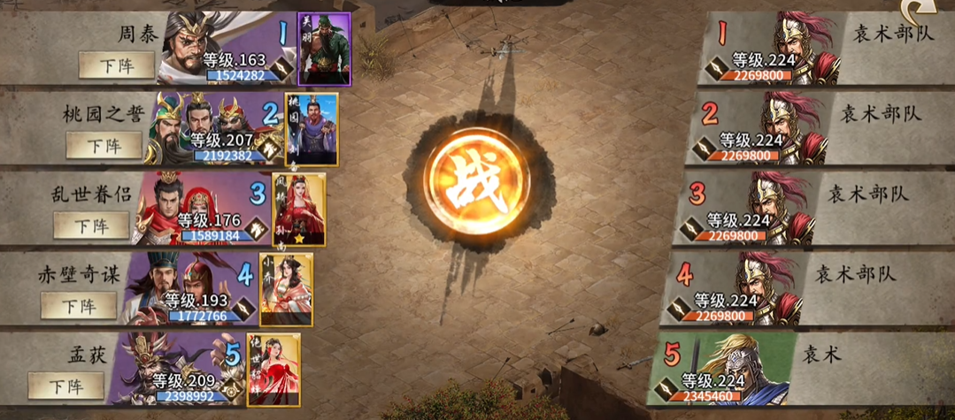 战前准备是成功的基础,必须将主将等级和兵力提升到较高水平,这可通过反复刷其他副本或日常任务积累经验实现。优化装备配置,如选择霸下、烛龙或灵龟等套装增强防御和输出能力,确保武将能承受袁术部队的高强度攻击。战斗中需合理分配资源点,在损失过大时及时补给,避免因兵力耗尽导致失败。玩家还需熟悉手牌系统,找准时机释放战术技能,例如在敌方战车行动前使用控制效果限制其溅射攻击,从而减少团队损失。