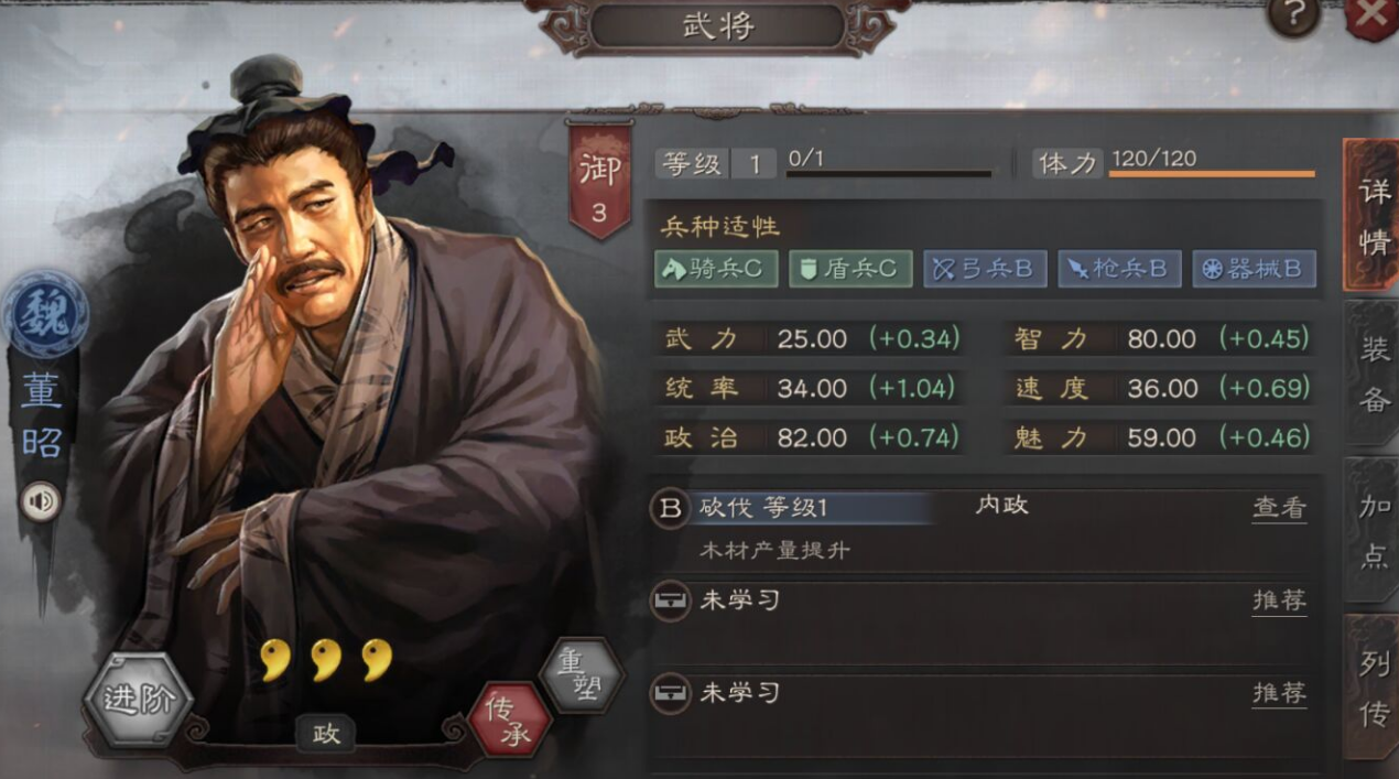 合理规划内政系统对木材产量提升至关重要。委任拥有木材加成战法的武将担任木材官,能显著提高木材产量和屯田收益。例如蔡邕的晓知良木技能可提升木材产量,而顾雍的枯木逢春则能增加屯田收益。三星武将中李严、董昭等也具备类似效果,可作为过渡选择。内政官的加成效果会随着技能等级提升而增强,因此优先培养相关武将的战法等级十分必要。