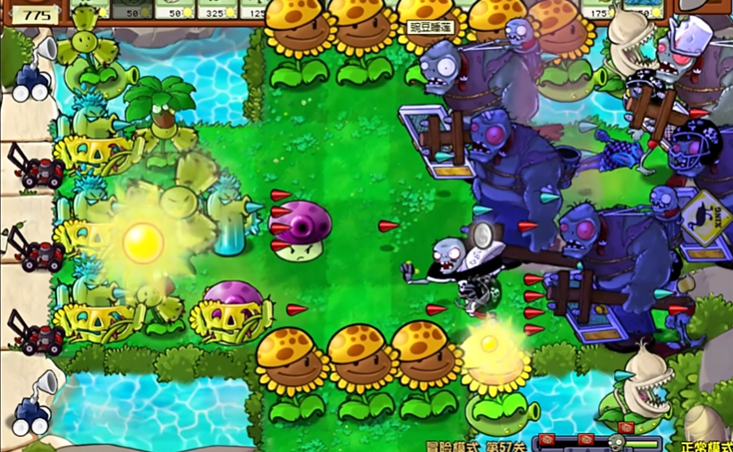 第57关的核心挑战在于应对大量巨人僵尸和冰车巨人僵尸的混合进攻。开局需快速建立阳光经济,优先在左侧种植阳光向日葵,确保阳光供应充足。第一列必须放置汉堡射手,用于拦截挖矿僵尸的偷袭。随着阳光积累,逐步在中间草坪补充两列汉堡射手作为主力输出,右侧则用土豆雷和火辣坚果形成临时防线。本关需特别注意冰车巨人的推进速度,建议保留窝瓜和辣椒坚果作为紧急反制手段。