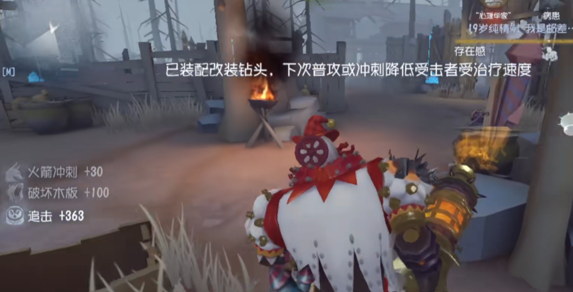 小丑的电锯冲刺机制直线型强,在开阔地形表现尤为突出。该技能可破坏木板且不受板击眩晕,大幅降低了板区博弈的复杂性。蓄力攻击范围优势明显,对翻窗翻板动作有较强克制效果,适合偏好正面追击的新手玩家。