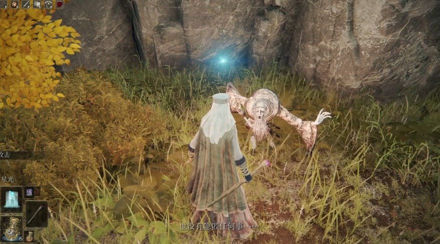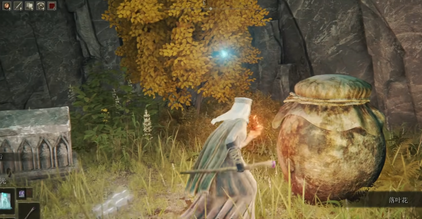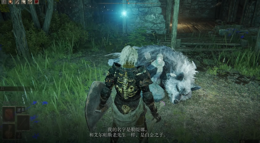 接下来玩家需从拉斯卡废墟出发,沿墙壁找到湖旁结晶洞窟。洞窟内需击败BOSS猎犬骑士,从洞窟出口左侧可找到NPC缇勒娜。对话时选择展示半截符文并答应她的请求,可获得白金之子缇勒娜骨灰。若未在进入雪山前完成此步骤,缇勒娜可能死亡,骨灰将直接掉落在地。此后需前往雪山索尔城,击败BOSS老将并拾取圣树秘密符节(左),这是任务后半段的核心道具。