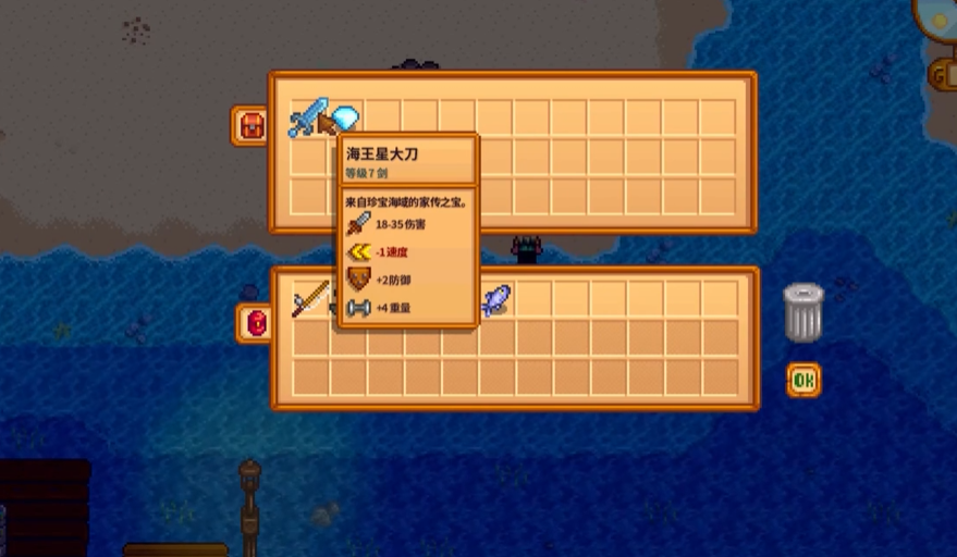 海王星大剑(海王星大刀)是星露谷物语中一把蓝色品级的武器,适合中后期战斗使用。该武器可通过气泡池钓鱼、钓鱼比赛奖励或锻造获得,其基础属性优于多数中期武器,但无法直接丢弃或出售给普通商店,需通过冒险者公会处理。升级海王星大剑需前往姜岛火山矿区的锻造台,消耗银河之魂等材料进行强化。