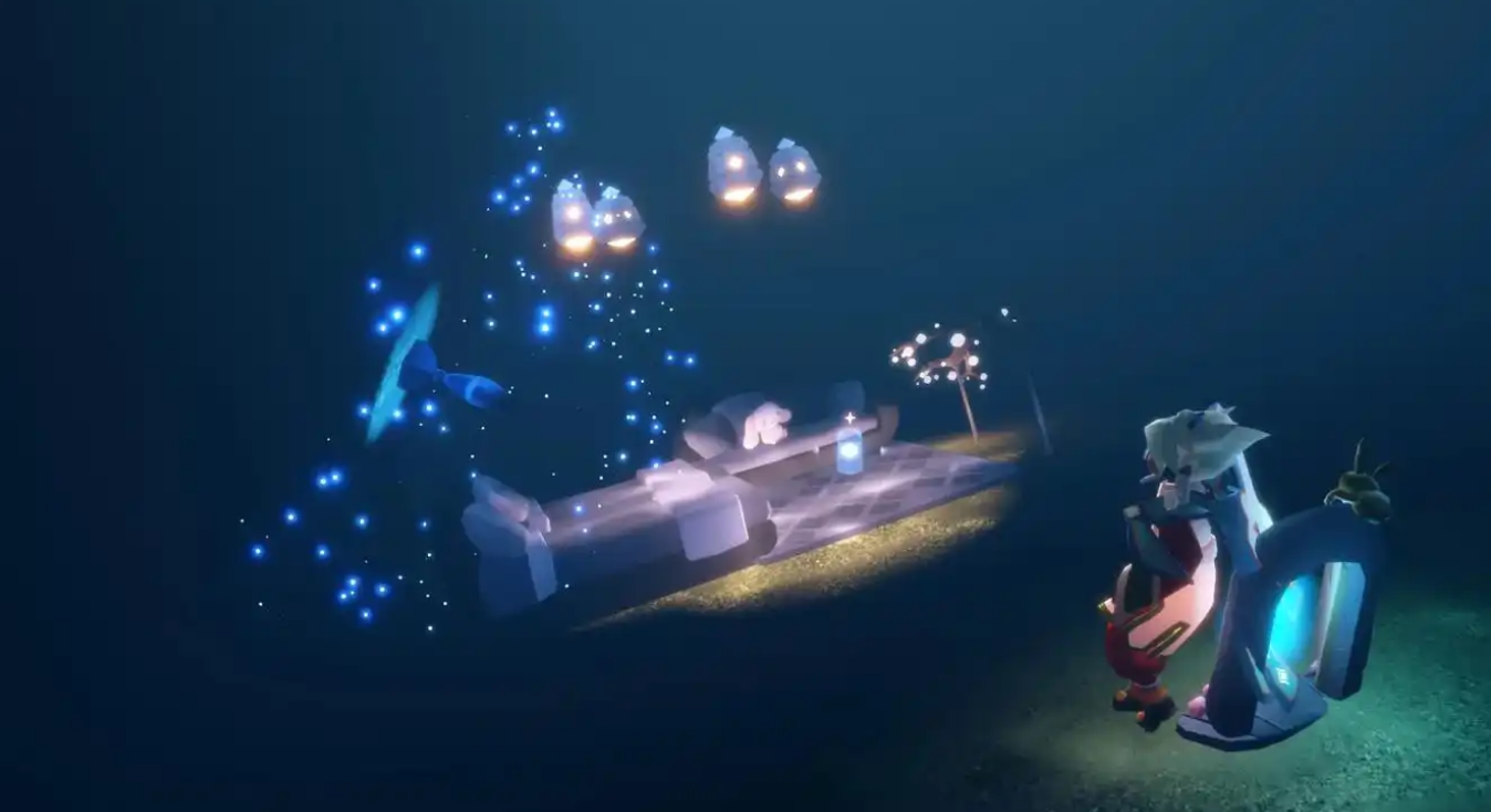 要获取光遇潜海季的宝藏,首先需要解锁潜水功能。进入潜海季新地图的路径是从墓土沉船图右侧的港口进入,到达后沿正前方山洞深入,在光圈处打坐直至石碑亮起,鳐鲲会赋予潜水能力。解锁后水面上升并出现水下通道,通过右侧方向键操控角色,上滑摇杆上浮,下滑摇杆下潜,水下移动需注意氧气条消耗。氧气不足时可寻找蓝色气泡补充,若氧气耗尽会持续掉翼,需及时返回水面恢复。潜水区域分布着烛火、隐藏任务及光之生物等互动元素,需协调探索与氧气管理。