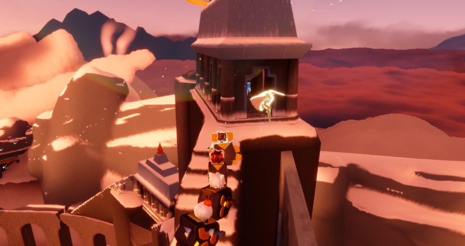 鳐叫先祖是霞谷最特别的一位,它待在霞光城最高处的破亭子里,飞到那里会发现发光的蓝点,点燃后跟着收集碎片就能解锁。这个收集过程稍微有点难度,建议找个朋友一起来帮忙。最后一位喝彩先祖在终点竞技场的左上角,飞上去就能看到,它会教咱们一个超可爱的欢呼动作。