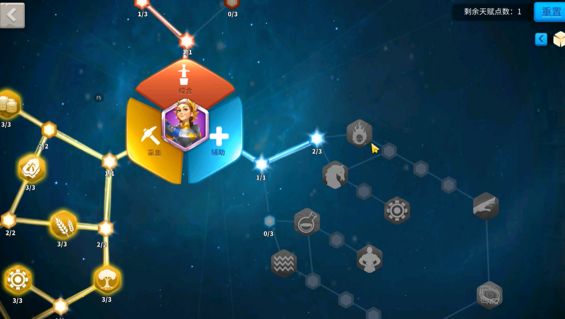 由于她主要作为副将出场,天赋优先选择采集路线,37级即可点满关键节点。前期可适当投入辅助天赋提升远征挑战收益,中期转为纯采集天赋优化资源效率。打架时切记隐藏贞德,避免成为集火目标,搭配主将需选择生存能力强的角色,如理查一世或君士坦丁。