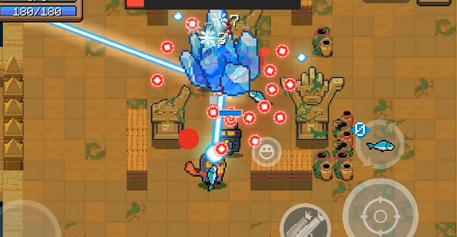 打BOSS有技巧,自动步枪这类稳定输出的武器最靠谱。狙击枪除了魅影其他都不推荐,输出效率太低。遇到冰霜之鹰一定要拿,虽然清小怪慢,但打BOSS能让对方一直冰冻任你宰割。激光鱼也是个好东西,全屏穿透攻击还能引爆炸药桶,清场效果一流。记住打BOSS时要保持移动,别站着当靶子。