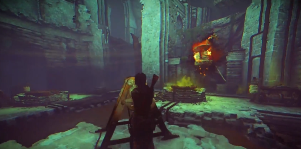 战斗核心机制是利用场景中的矿井火焰。将女巫引诱至矿井附近,使其被井口喷出的火焰灼烧可造成大量伤害。需注意矿井绳索的耐久度,女巫会尝试切断绳索使火焰失效,因此要优先打断她的施法动作。推荐使用霰弹枪或爆炸箭快速压制女巫,迫使其中断攻击。当女巫血量降至一半时会进入狂暴状态,她会频繁瞬移并增加火球频率,建议保留高伤害武器应对此阶段。