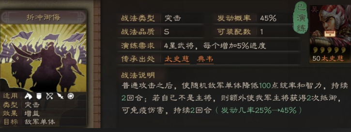在战法选择上,吴国阵容比较依赖突击类和增伤类战法。比如折冲御侮、当锋摧决、兵无常势这些战法非常适合太史慈和孙权。谋略输出武将则适合携带风助火势、熯天炽地等高伤害战法。鲁肃这类辅助武将可以选择暂避其锋、刮骨疗毒等保护型战法。战法的合理搭配能让队伍强度更上一层楼。