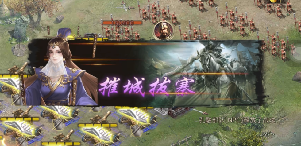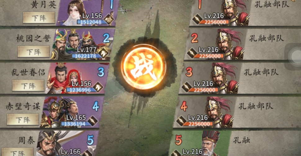 黄月英需要满二车和御宝,最好带红甲和流光玉符,阵法等级至少25级。她打头阵先手放战法,这样能有效削弱NPC血量。关羽要放在第二位,主要任务是最后一排丢觉醒战法保护后面的甘宁不被秒杀。甘宁的任务是多扔几次战法,尽量消耗NPC兵力。曹操不带副将,最后一排放战法给周泰创造输出环境。周泰带喷火车和极霸下套,靠喷火和残血斩杀收尾。
