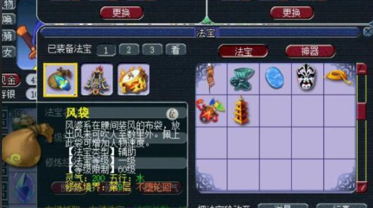 除了输出和防御,速度在战斗中也很重要,风袋就是专门用来提速的法宝。有了它,咱们能更快出手,抢占先机,尤其是在PK中,先发制人往往能决定胜负。如果宝宝速度不够,可能会乱敏,所以搭配风袋时最好调整一下宝宝的速度,确保比人物快50点左右,这样能稳定卡速。金甲仙衣则是另一个保命神器,它能概率减免受到的物理伤害,大大提升生存能力,特别适合脆皮的大唐玩家。