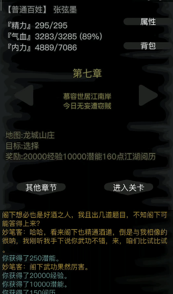 门派剧情方面,龙城山庄背景与江湖秘宝周天功密切相关,通过完成章节任务可逐步解锁萧氏一族的往事。支线任务需注意收集散落的手札残页,这些道具不仅关联隐藏剧情,还能兑换特殊剑法要诀。日常任务中,剑冢试炼是获取高阶剑法残页的主要途径,建议每日优先完成。
