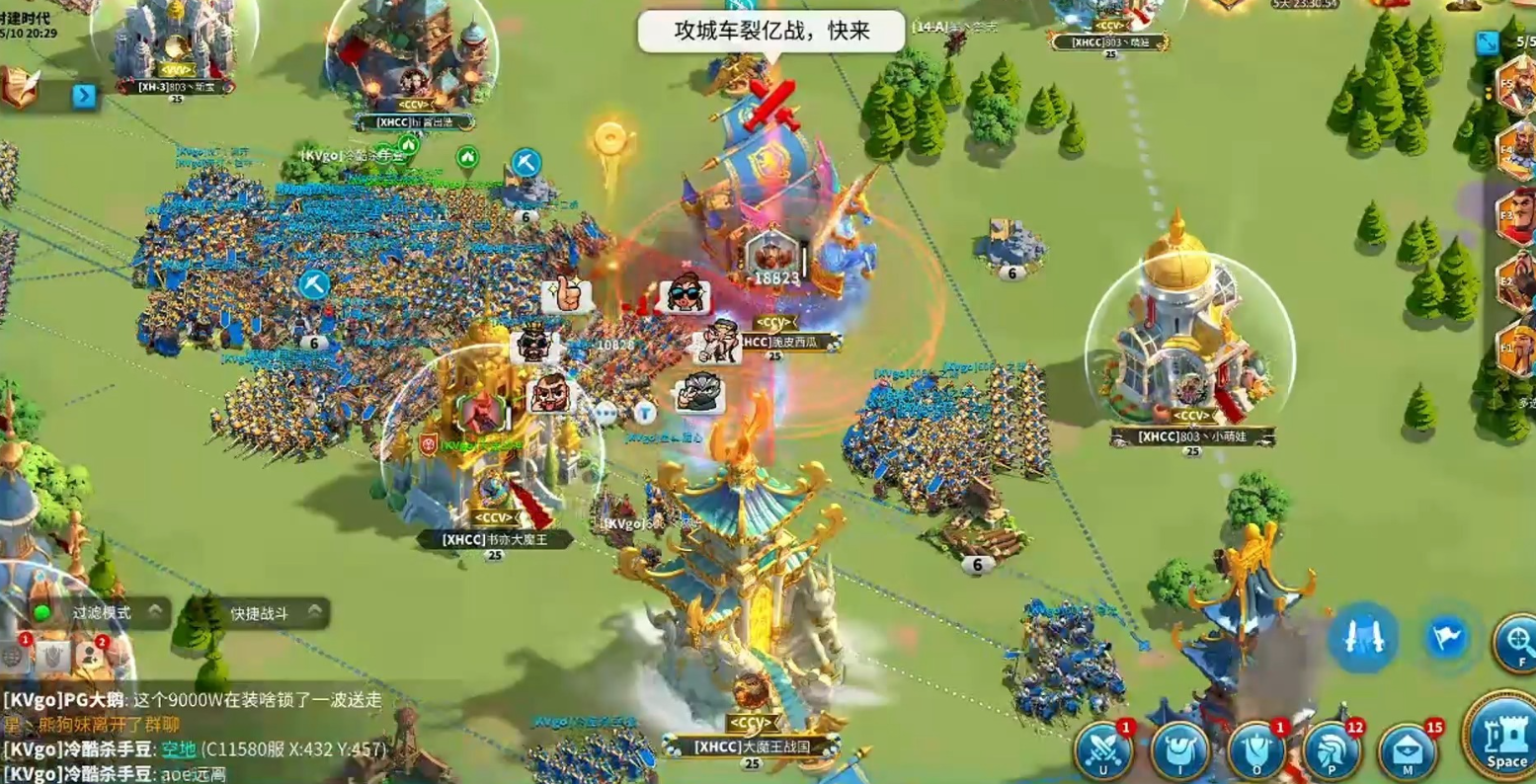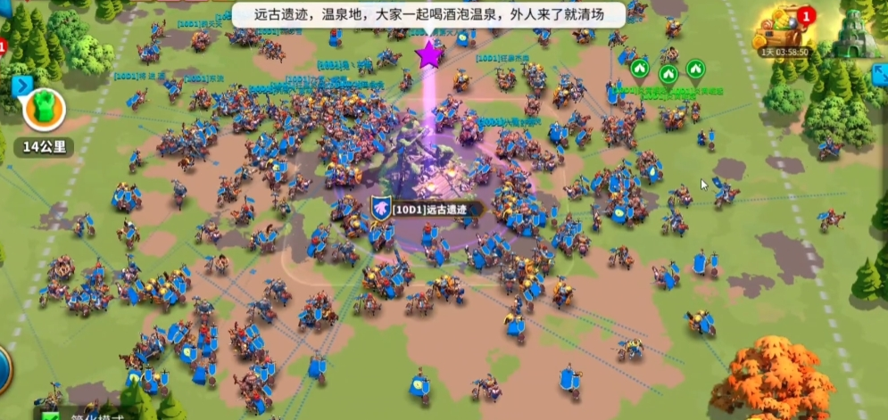 KVK1的核心战术包括多联盟集结和人海战术。多联盟集结指两到三个联盟协同作战,铺设旗帜接近敌方目标后同时发起攻击,利用集结部队速度优势快速运送兵力。人海战术强调集体作战,即使高战力玩家也难以抵挡数十队低战玩家的围攻。运兵战术是另一关键策略,通过骑兵集结快速向战场或敌方后方运送兵力,可用于扫矿或支援防守。泡泡城战术适合弱势方,利用大量开盾小号封锁敌方进攻路线以拖延时间。这些战术需根据战场形势灵活运用。