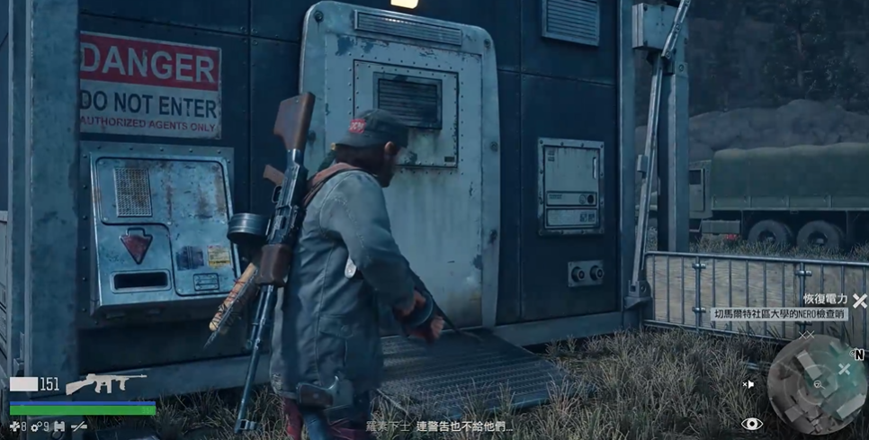 大部分NERO检查哨恢复电力的方法都差不多,关键就是找发电机和油箱。有些检查哨的油箱可能在帐篷里或卡车后面,比如旧锯木厂的油箱就在右侧帐篷里,发电机则在中部巨石旁边。如果找不到油箱,记得多转转周围的小路或建筑物角落,有时候会被杂物挡住视线。