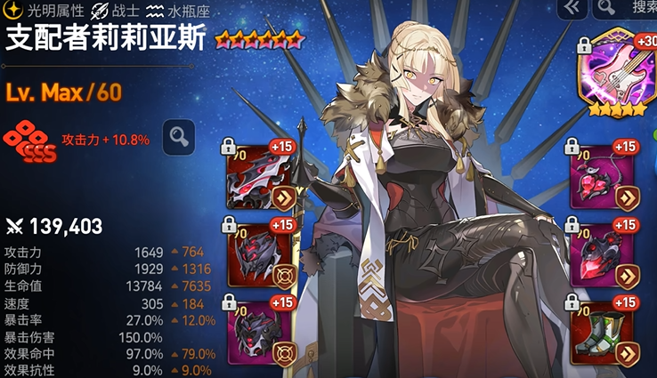 光属性角色中,支配者莉莉亚斯是当前版本最万金油的选择,其高速行动和群体增益效果能适配任何阵容,装备需求以速度和命中为主。伯里安凭借独特的禁魂效果成为针对烧魂体系的核心对策卡,在RTA中常居ban位。年轻的女王夏绿蒂作为暗系特攻手,在特定场合能发挥毁灭性输出。狮心王杰洛米亚则是反击队克星,AOE伤害能力出众。光之瑞儿作为顶级治疗角色,拥有复活和无敌等关键技能,是阵地战体系的重要拼图。