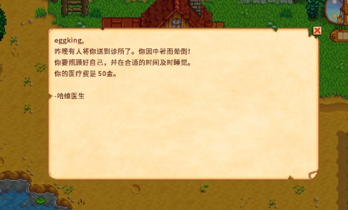 如果在星露谷里不小心把自己累趴下了,别担心,这里有几个简单有效的方法能帮你快速恢复。最直接的办法就是去医院治疗,医生会帮你解除精疲力尽的状态;如果已经结婚了,可以找配偶亲亲来恢复体力,不过每天只有第一个吻才有效;还可以去诊所买肌肉恢复药水,喝下去就能满血复活;当然最简单的就是回家睡一觉,第二天起来就精神抖擞啦。