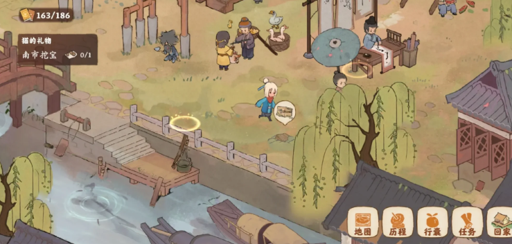 任务触发方式较为简单,玩家需先进入游戏主界面,点击任务选项并选择番外任务分类。在番外任务列表中找到猫的礼物任务后,系统会提示前往南市或特定场景。部分玩家反馈该任务也可能在剧情场景中触发,例如南有乔木支线任务中,猫的礼物会出现在钓鱼区域附近的土堆旁。