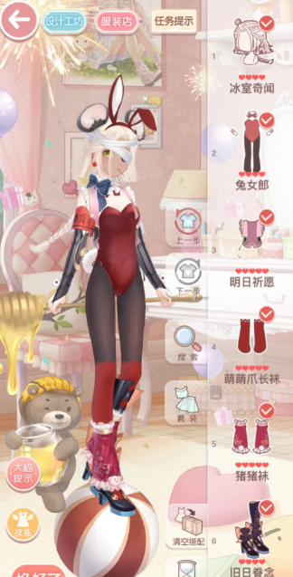 完美通关兔女郎关卡,咱们首先得准备好核心服装部件。兔女郎连衣裙和兔耳朵头饰是必不可少的,这两样可以通过设计图制作获得。如果暂时没有这些部件,可以先去服装店购买材料制作。记得搭配一些活泼可爱的饰品,比如粉色系的手链、项链,这些小细节能让整体造型更贴合主题。