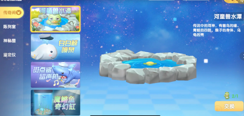 钓到河童之后,可以去找大力兑换好东西,比如河童兽水潭之类的可爱家具。大力的神秘商店在游乐场门口,摩尔报社旁边,点开传奇阁就能看到兑换选项。河童泡温泉的造型特别萌,放在家园里还能增加点趣味性,所以多攒几只没坏处。