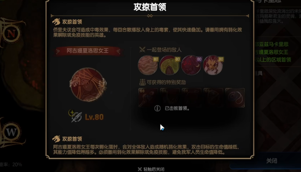 蚊子和女王作为最后挑战目标,因其机制复杂需要更精细的阵容搭配。蚊子位于右下区域,要求全木系阵容且需高频净化手;女王位于顶部区域,需要严格把控BUFF清除节奏和DEBUFF数量。这两场战斗都存在较多不可控因素,建议在积累足够战斗经验后再尝试。特别需要注意的是女王战必须控制DEBUFF数量不超过3个,否则会触发团灭机制。