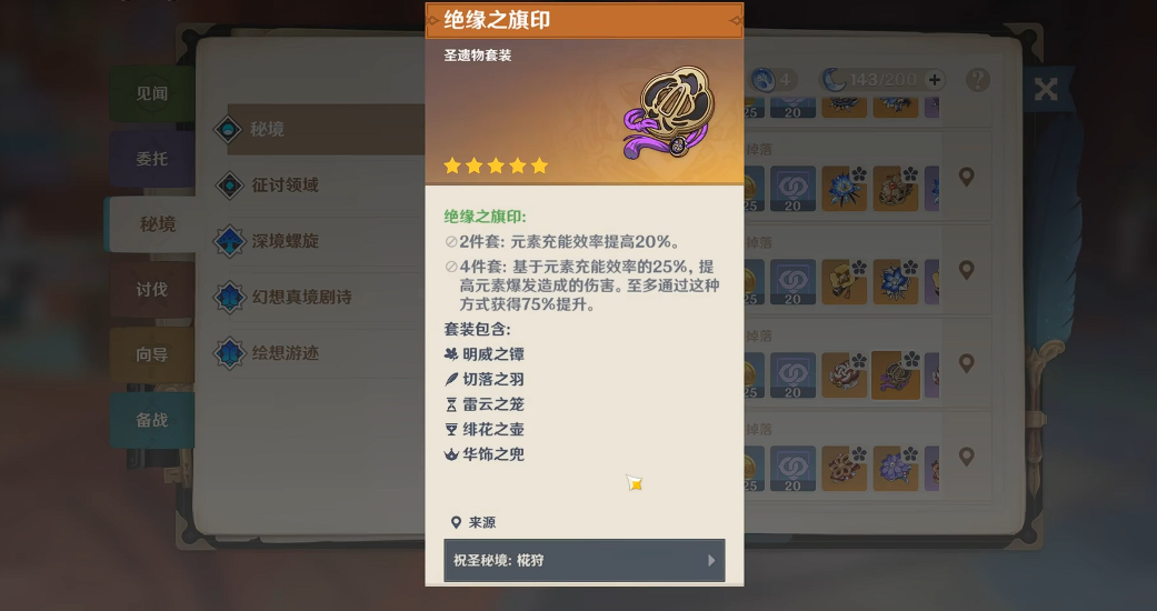 雷电将军的装备首选绝缘四件套,充能沙、攻击杯或雷伤杯、暴击或爆伤头都可以,武器优先选专武薙草之稻光,没有的话可以用天空之脊或者四星的渔获。香菱也是绝缘套,充能要堆高一点,武器推荐渔获或者西风长枪。行秋可以用祭礼剑,保证充能不断大,圣遗物2水+2宗室或者4绝缘都行。班尼特带宗室四件套,武器选高白值的风鹰剑或者天空之刃,实在没有就用西风剑。