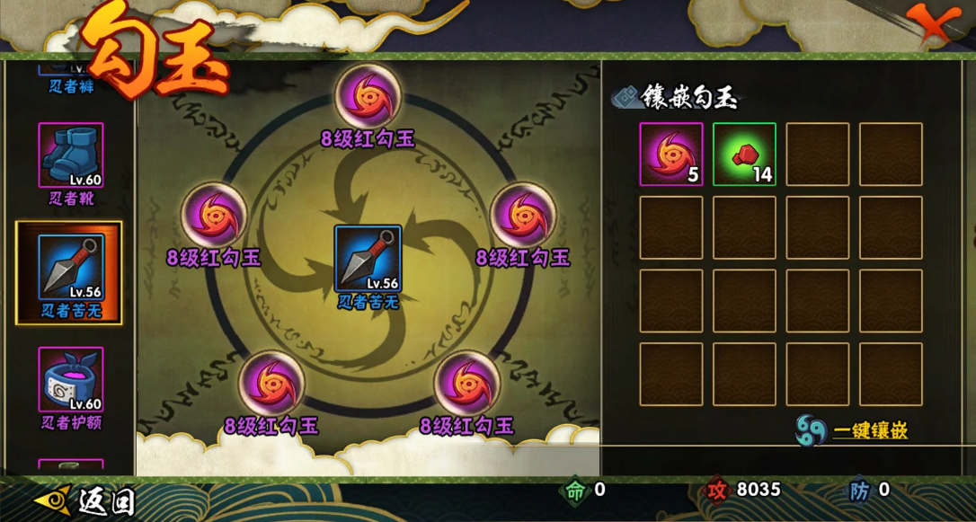 接下来聊聊培养的优先级,既然资源要用在刀刃上,那肯定得分个先后,在所有颜色的勾玉里,红色加攻击的勾玉对战力提升和刷图打架的帮助最大,所以应该最先重点培养,把所有红色勾玉槽的等级优先升上去,其次是加防御的蓝色勾玉和加生命的绿色勾玉,至于青紫黄这三种双属性勾玉,虽然每个加的单一属性比纯色的少,但是胜在能同时加成两种属性,综合收益也不错,可以放在红蓝绿之后进行培养,但顺序上要求就没那么严格了。