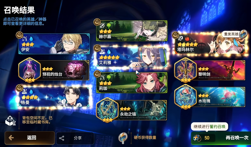 游戏初始会提供一个特殊的筛选召唤,给予你共计30次的召唤机会,并且这个结果可以反复尝试,直到你对所获得的英雄组合感到满意为止。在这个过程中,你将能够多次进行十连抽取,并从这些结果里最终挑选一个你最中意的一套。该召唤会保证你在第1、10、20、30次召唤时,必定获得一名五星英雄。对于绝大多数玩家而言,这个新手池应该优先用于获取特定的五星英雄,而非神器,因为一个强力的初期英雄带来的推动作用远超过一件神器。在众多选择中,一个被普遍推荐的目标是伊赛丽亚,也就是玩家们常说的木飞剑,她的技能拥有重置冷却时间的独特效果,在中后期能发挥巨大作用。像塔玛林尔这样的纯辅助角色,拥有强大的治疗和团队增益能力,也是极具价值的选择。开局阶段应将所有精力聚焦于这个筛选池,耐心尝试,力求获得一个包含高价值五星英雄的理想结果。