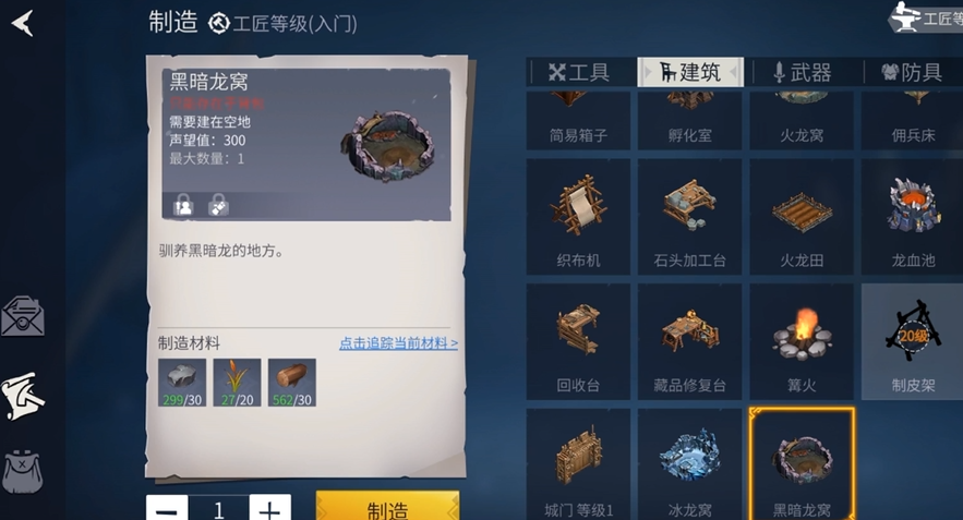 如何建造一个龙窝呢?你需要完成游戏前期指引中关于龙窝的相关任务,通常这会要求你前往晨曦森林收集必要的建造材料。完成任务解锁建造权限后,你就可以在营地的建筑界面中找到龙窝的选项。点击建造,界面会显示所需的材料清单,通常包含特定的矿石、晨曦草和木材,初期建造所需的材料数量并不多,比较容易凑齐。确认材料充足后,在营地内选择你心仪的位置点击确认,栩栩如生的龙窝便会拔地而起。