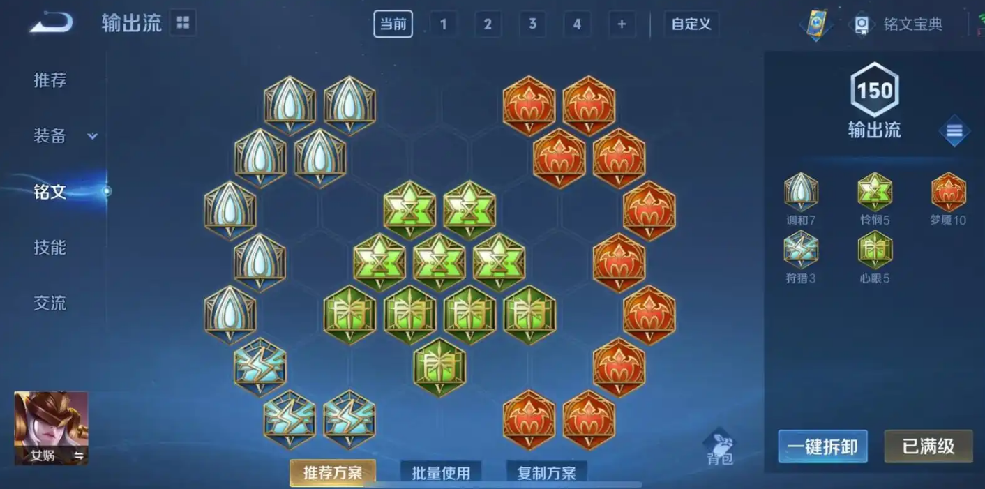 红色铭文基本锁死梦魇,它加法术攻击和法术穿透,能让女娲前期的技能打人更疼。蓝色铭文常见的选择是轮回或者调和。轮回能提供法术攻击和一点法术吸血,增加线上续航;调和则加最大生命、回血和移速,能让身板脆的女娲更耐揍一点,跑图支援也快一丝。绿色铭文方面,心眼提供的法术穿透和攻速不错,但如果你觉得技能转得太慢,用怜悯来堆冷却缩减也行。就是红色要伤害,蓝色看你要续航还是生存,绿色补穿透或冷却。