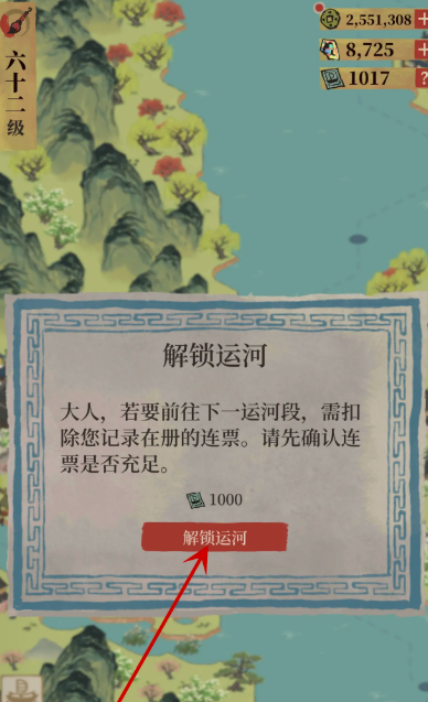 解锁杭州府的运河区域首先要求玩家在苏州府完成驿站的阊门章节。这一章节的探险任务需要按照从右到左的顺序完成,之后会触发一个前往码头的任务。与NPC阿牛哥对话后,玩家可以获得杭州府的解锁权限。回城后,使用苏州府印进入大地图,向下滑动即可找到杭州府。在杭州府中,运河码头位于最右下方,解锁它可能需要开垦附近的地皮,比如寥寥坊,这需要消耗一定数量的铜钱、竹笋和人力,并耗时多个小时。在解锁过程中,玩家需要顺着运河开完最靠近码头的五块地,并开设商栈来赚钱,以确保顺利解锁码头功能。