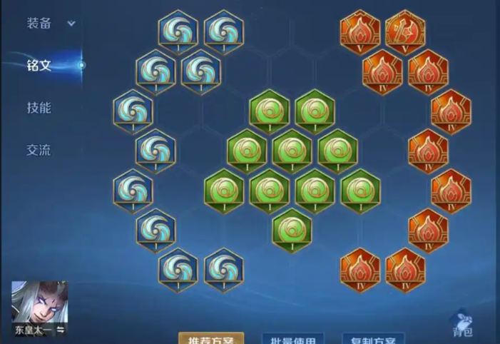 聊完了出装,再简单说说和出装配套的铭文与技能要点。铭文推荐使用调和、虚空、宿命这一套标准的坦克铭文。这套铭文提供了大量的生命值、每5秒回血、冷却缩减和物理防御,完美契合东皇太一需要血量支撑、需要技能频率、需要续航能力的全部特点。在技能加点上,主一副二,有大点大。玩打枪流最关键的就是要善用二技能,它不是用来打伤害的,更多的是用来封锁敌人走位、为团队创造追击或逃跑空间,以及利用其释放后的加速效果快速接近敌人,然后接上大招。二技能放得好,你的威慑力就成功了一大半。