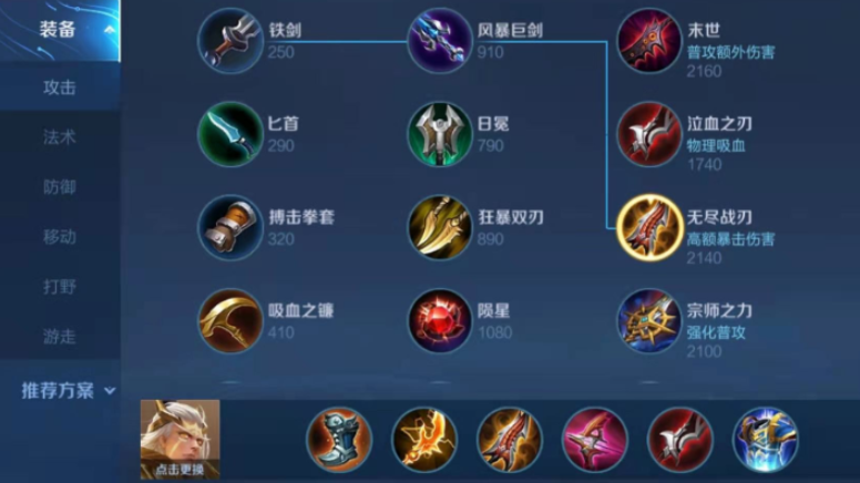 泣血之刃提供高额的物理吸血,站桩输出能力很强,但如果敌方爆发高或者控制多,你没有太多站桩输出的机会,它的作用就大打折扣。末世可能是更好的选择,它提供的百分比伤害对付坦克更有效,也附带一定的吸血能力。制裁之刃是一把双刃剑,只有当敌方有蔡文姬、程咬金这类高回复英雄时,才需要考虑替换掉你的吸血装备出它,否则它本身的输出属性是比较差的,盲目出会严重拖慢你的发育节奏。