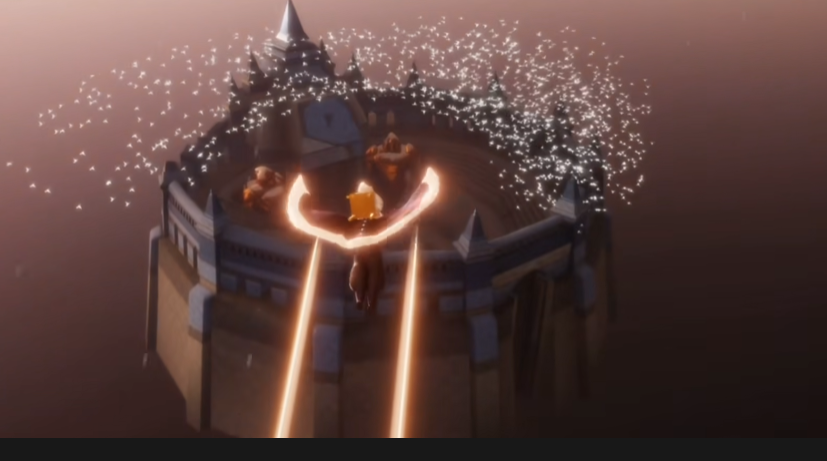 关于这座城堡的景色,还有一个有趣的小细节。你看到的千鸟城其实有白天和黑夜两种不同的模样,风格区别很大。如果你想看到白天的景色,拥有更明亮的视野和清晰的建筑细节,记得在霞谷的终点大厅里,找到那个打坐的光圈并触发动画,完成这个过程后再出发。如果你跳过了动画直接飞出窗口,那么到达的就会是黑夜版本的千鸟城,那时候城堡会点缀着灯火,背景是深邃的星空,非常适合拍摄一些有意境的剪影照片。