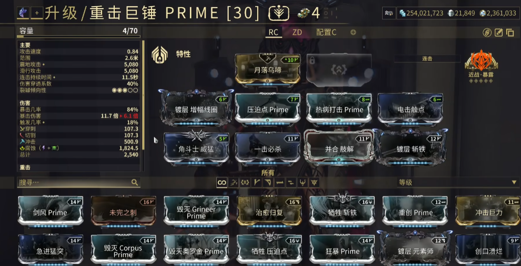 在确定了以紫卡倾向性为第一选择标准后,武器的具体类型可以相对灵活。拥有高共鸣等级紫卡的近战武器是首选,无论其种类。在没有特定紫卡的情况下,一些传统选择如空灵刃或米雷泥沼也被使用,但并非因为其集团MOD有额外效果,而是基于其紫卡倾向性或手感。如果追求快速启动技能的高倍率伤害,可以考虑自带初始连击数的武器,例如重击巨锤Prime的自带30连击,可以在不依赖邪恶蓄力MOD的情况下,让一技能直接享受到可观的伤害倍率加成,从而缩短输出循环的起手时间。武器的外观和攻击方式可以按个人喜好挑选,但选择的核心始终围绕紫卡潜力和连击叠加速度展开。