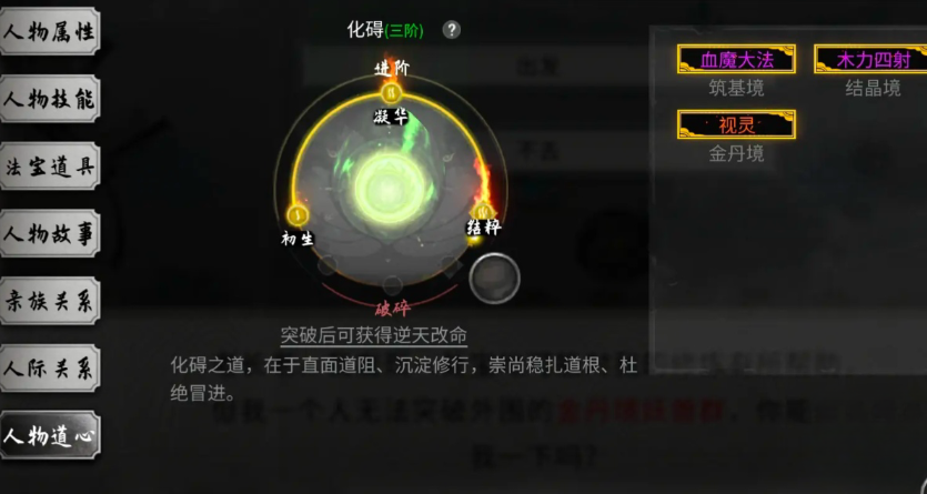 当修为积累达到当前境界的瓶颈时,就需要进行突破以进入下一个境界。突破并非简单点击按钮,而是需要收集指定的突破材料。以最初的筑基期为例,天道筑基被认为是最佳选择,它要求玩家集齐六种不同属性的灵气和三种天材地宝,这些材料可以通过通灵秘境产出或击杀特定大妖兽获得。灵气的纯度仅影响突破的成功概率,而天材地宝的品质则直接关系到突破后所获得的基础属性加成,因此收集高品质材料对角色长远发展有益。