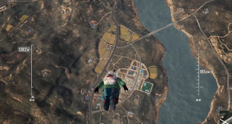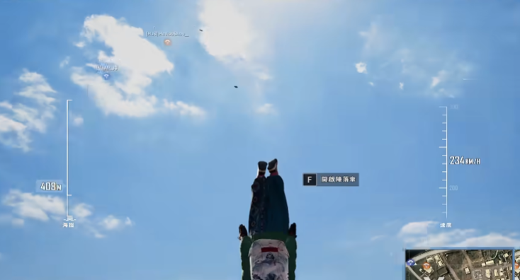 飞到目标点上空的技巧在于灵活切换俯冲和平飞。当距离目的地还有约300米时(小地图白线3格),快速将视角下拉转为垂直俯冲,让速度飙到234km/h触发满速开伞机制。开伞瞬间初速度越高,后续滑翔阶段就越快落地。