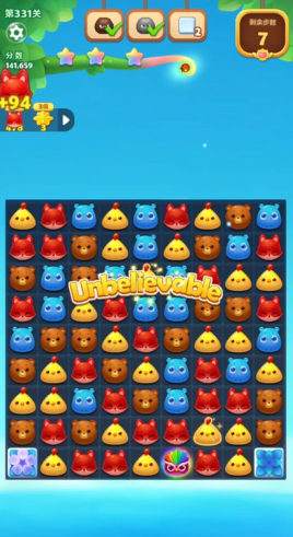 开心消消乐331关的关键在于帮助两只蜗牛顺利抵达终点。这一关的步数限制是30步,需要集中消除蜗牛行进路线上的障碍。蜗牛只会沿着发光的绿色格子移动,消除相邻的动物可以让蜗牛前进相应步数。开局时要先观察蜗牛的路径规划,优先在蜗牛附近制造直线或爆炸特效来快速清理道路。